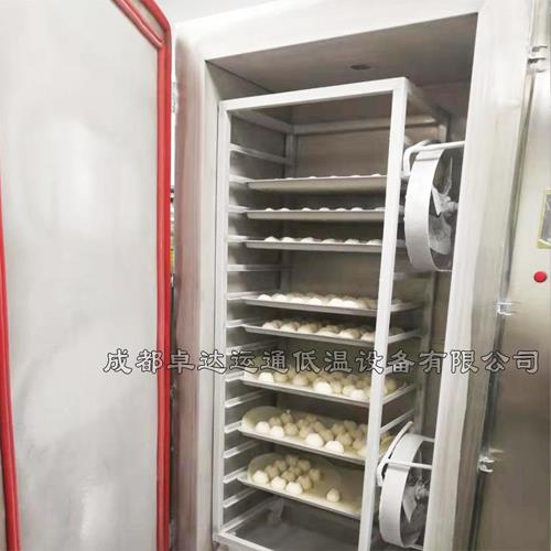 柜式液氮速冻机,内置多个不锈钢物料盘,通过喷嘴向物料表面直接喷淋液滴,物料在不锈钢盘上与低温氮气通过风机搅动进行热交换,进行快速冻结 。汽化的低温氮气由排气口排出,速冻1kg食品,液氮消耗量为0.3—1kg之间。由于冻结时间短,而且主要靠液氮直接汽化换热,因此冻品干耗较用风冷方法小很多。